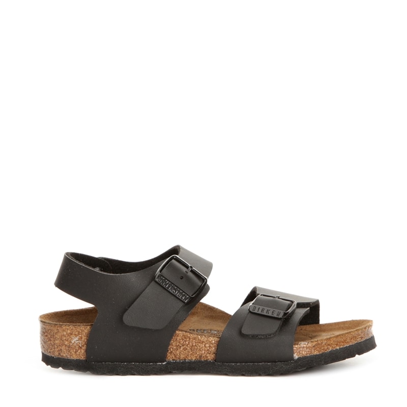 New York, sandaler från Birkenstock i klassisk modell med hälrem. Ovandel i svart Birko-Flor, ett slitstarkt och hudvänligt syntetmateriall. Mockaklädd korkfotbädd. Fotbäddens utformning ger dig maximalt stöd och avlastning för knän och rygg. Smal läst, fin passform för dig med smalare, nättare fötter.