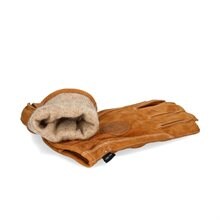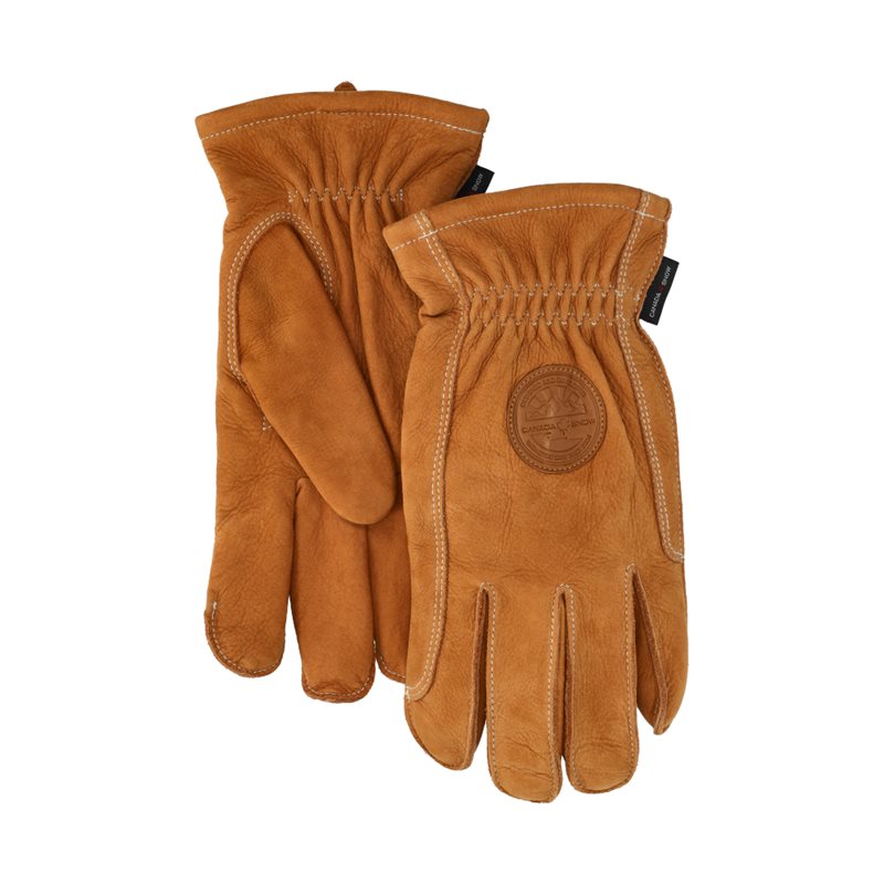 Dala-handskar från Canada Snow, tillverkade i tunn och mjuk nubuck i cognacsfärg, med en matchande logotyp som pryder ovansidan. Fodrade med varm textil på insidan för extra komfort under kalla dagar.