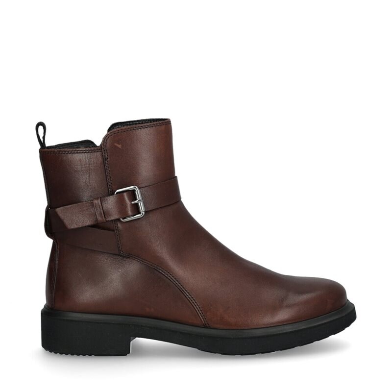 Metropole Amsterdam, vattentäta boots från ECCO brunt skinn med rem runt ankel och praktisk dragkedja på insidan av skaftet. Boots i Jodhpur-stil med en lätt yttersula och med en klack på ca 2,5 cm. ECCO Waterproof.