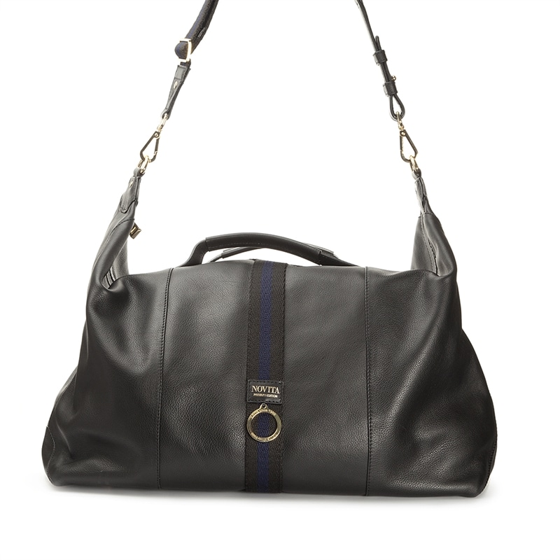 The Perfect Weekendbag är en rymlig väska från Novita, tillverkad i mjukt svart skinn med guldfärgade metalldetaljer. Väskan har en praktisk, justerbar axelrem i vävt material som går att knäppa av. Inuti är väskan fodrad med mörk textil och har ett mindre fack på sidan som stängs med dragkedja. Två bärhandtag om man inte vill använda axelremmen. Novita är tidlösa, unika och omsorgsfullt tillverkade produkter av finaste skinn från utvalda garverier. Mått (cm) H:30 B:30 L:50