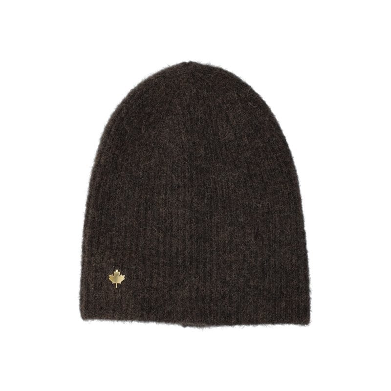 Alice, brun mössa i fin ullblandning från Canada Snow. Dekorativt löv-emblem på sidan i guldmetall. Material: 48% Alpaca, 21% Ull, 28% Polyamide och 3% Elastan.