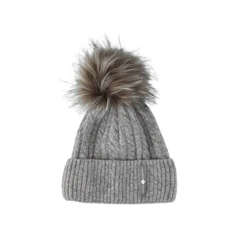 Alexia från Canada Snow, flätad mössa med tofs i fuskpäls. Tillverkad i en ullmix som består av ull 80% och Polyamid 20%, dekorativ logodetalj på sidan.
