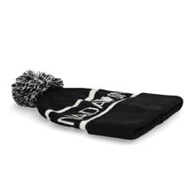Fjällnäs, herrmössa med tofs i snygg, sober färgkombination i svart och vitt. Material 50% Ull och 50% Akryl.