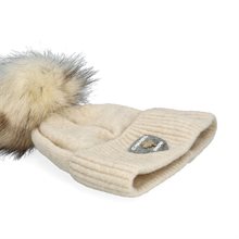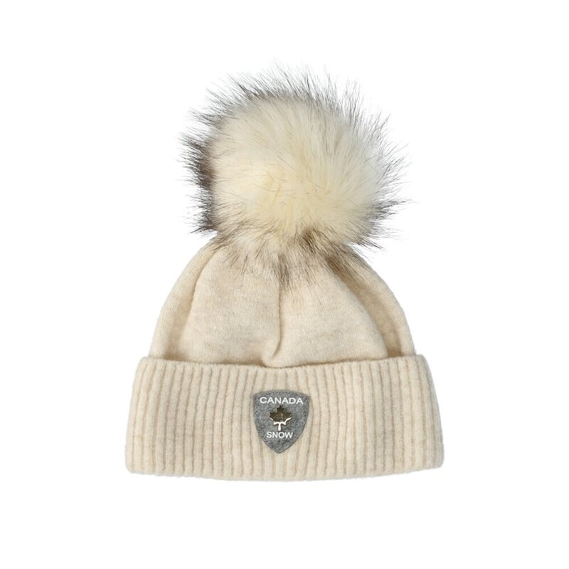 Laurie är en lyxig tunnare mössa med fin tofs i beige melerad fuskpäls som matchar den vintervita mössan. Mössan har en dekorativ logodetalj i filt och guldfärgad metall. Canada Snows produkter är av högsta kvalitet och designade med stor noggrannhet. 45% akryl, 27% polyamid, 17% viskos och 10% ull. Tillverkad i Europa.