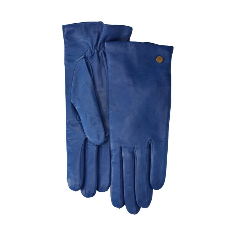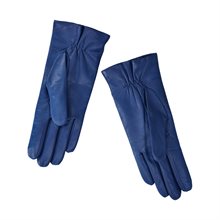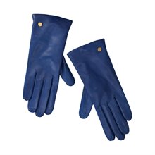 Corato, handskar för dam från Novita. Handske i blått, mjukt nappaskinn med 100% ekologiskt ullfoder, liten dekorativ guldfärgad logodetalj. Producerad i Italien på den anrika fabriken Antonio Murolo. Klassiska och mjuka skinnhandskar av högsta kvalitet.