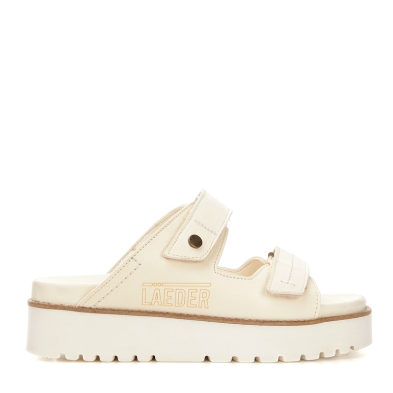 Lilja, platåsandaler från Läeder by Nature med ovandel i ett offwhite syntestiskt garvat skinn. Innersula har en extra padding för optimal komfort, yttersulan är ca 3,5 cm hög och är i lättvikts EVA. Läeder by Nature är exklusivt framtaget för att värna om vår miljö och om dig. Det är en unik och gedigen produkt av högsta kvalitet. Allt skinn och foder är helt kromfritt och skorna produceras i Portugal.