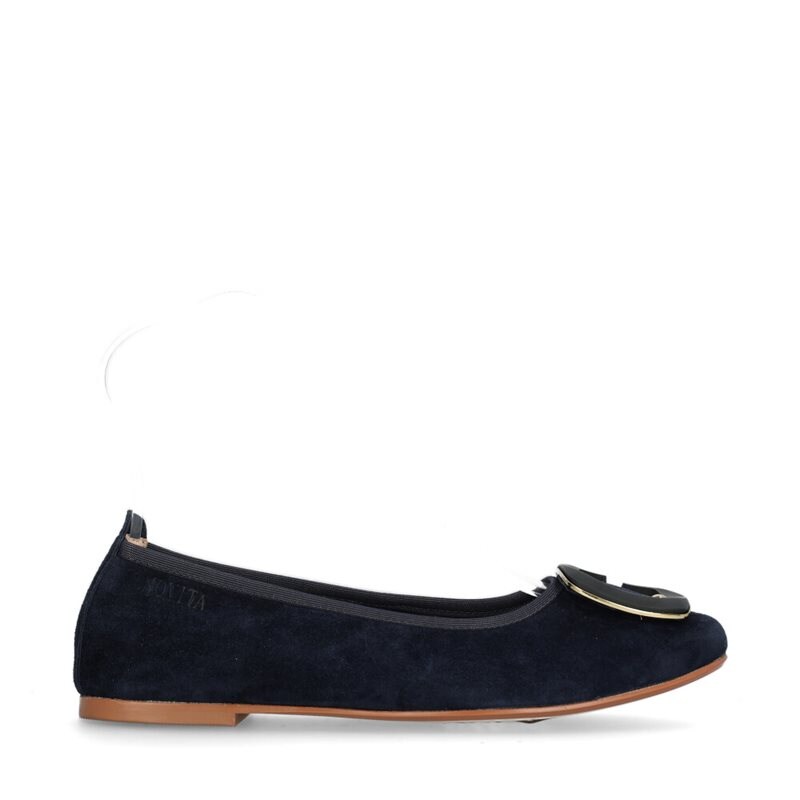 Amendola från Novita - flexibla ballerinaskor i klassisk design. Ovandel i marinblå mocka och dekorativ detalj över tån. Innerfoder och innersula i skinn för bättre komfort och fotklimat. Yttersula i gummi med låg och nätt klack.