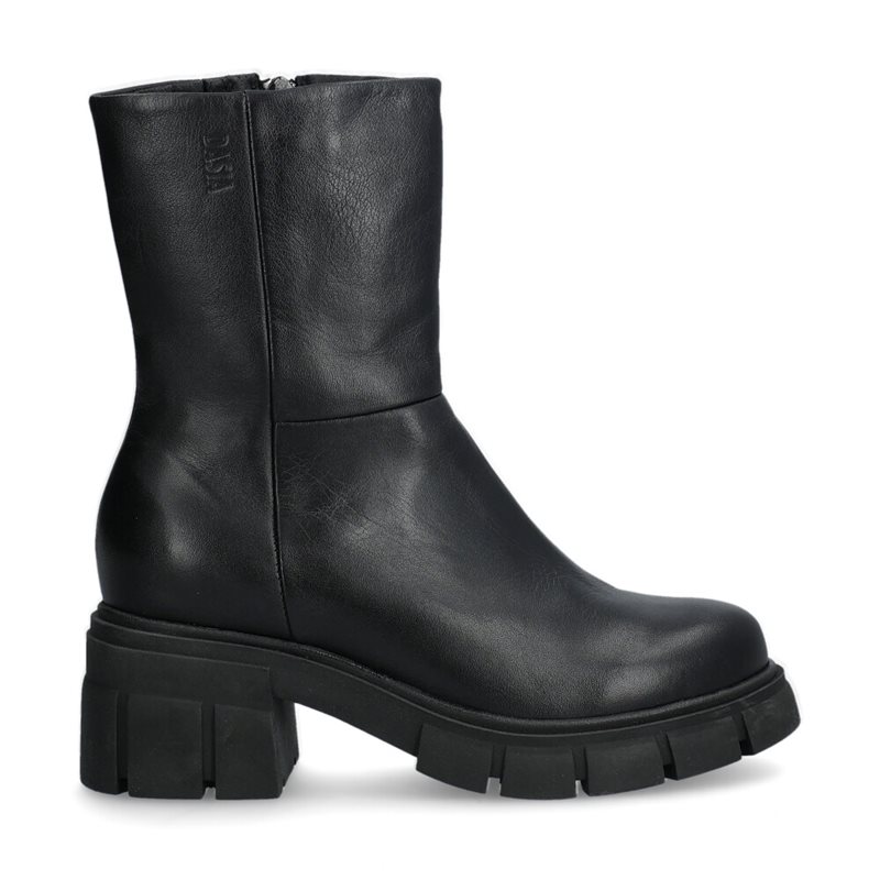 Avila, boots från Dasia. Ovandel i svart skinn med dragkedja på insida av skaftet. Fodrade med textil och har mjuka komfortsulor i skinn, för bra andningsförmåga. Svart grov yttersula och grov klack i gummiblandning. Klackhöjd ca 6 cm, skafthöjd, ca 18 cm, skaftvidd ca 28 cm (stl 37).