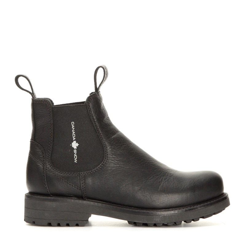 Dawis från Canada Snow - klassiska chelseaboots med tidlös design och funktionella detaljer. Ovandelen är tillverkad i mjukt narvsatt svart skinn som pryds av elastiska resårpaneler med diskreta logodetaljer. Insidan är fodrad i värmande ullmix och kombineras med en uttagbar komfortinnersula fodrad med skinn - perfekt för dig som önskar en bredare läst eller egna inlägg. Modellen vilar på en flexibel yttersula i gummiblandning med grov struktur som ger bra grepp och stabilitet. Dawis är ett självklart val för dig som söker en stilren chelseaboot med hög komfort och pålitlig kvalitet.