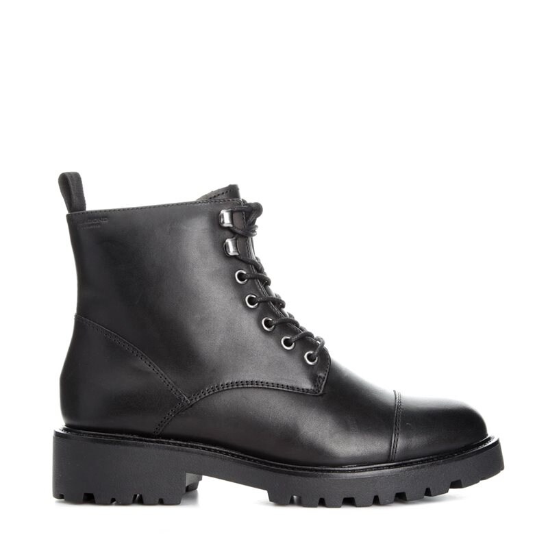 Kenova, snörade kängor från Vagabond i svart skinn med en chunky sula. Dragkedja på insidan, pull tab bak på skaftet och rundad tå. Boots som är varmfodrade med textil och har innersulor i skinn. Yttersula av gummi. Tidlösa boots som är lika snygga år efter år.