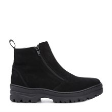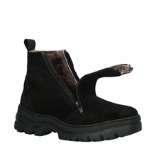 Mahonia från Dasia - ullfodrade kängor med förbehandlad mocka som skapar en vatten- och smutsavvisande yta. Ovandel i mjuk svart mocka, fodrad med fårskinn som håller dina fötter varma. Dragkedja på båda sidor för enkelt insteg. Sulan har en något kilformad siluett samt en feminin lästform. Gummisula med utfällbara broddar i OCSystem. Broddarna fälls enkelt ut och in med hjälp av en medföljande specialnyckel.