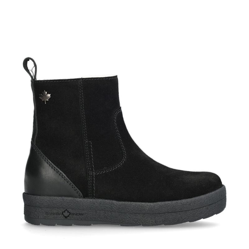 Mount Baker från Canada Snow - sportiga curlingboots med inbyggd kil och fodrad med fårskinn. Ovandel i svart vattenavvisande mocka och dekorativt emblem på skaftet. Dragkedja på insidan för ett enklare insteg. Inuti finns en värmeisolerande 4-skiktsinnersula tillverkad av kork, aluminium, thinsulate och fårskinn. Yttersula i gummi som erbjuder ett bra grepp på kalla underlag.