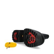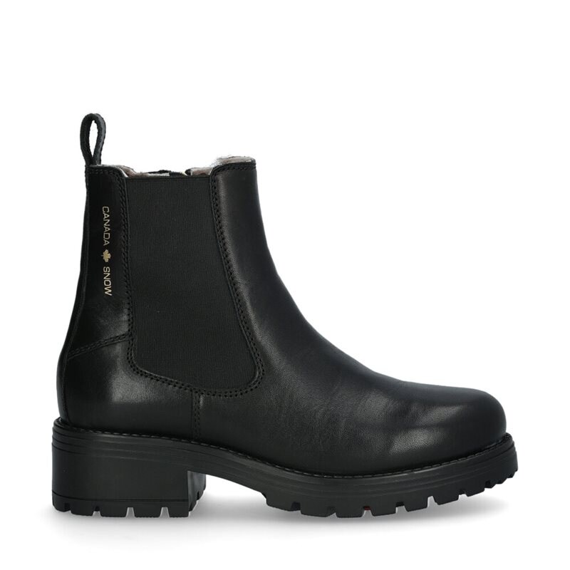 Mount Kimberley från Canada Snow. Svarta kängor i slitstarkt skinn med ett varmfodrat innerfoder i fårskinn. Innersulan består av 4 värmeisolerande lager. Stövlarna har en dragkedja på insidan med en dekorativ logotyp. Yttersulan i gummi har utfällbara spikar från ALPI-systemet. En praktisk funktion där spikarna enkelt kan vikas in och ut med ett medföljande verktyg.