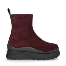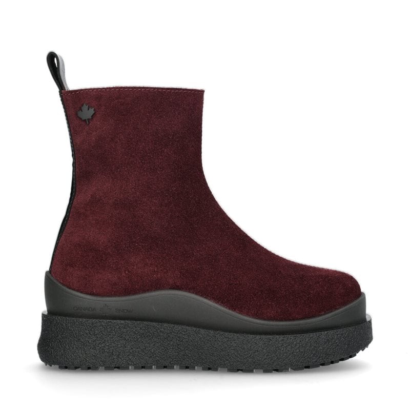 Mount Meer från Canada Snow - vinterboots i bordeauxfärgad mocka som är både vatten- och smutsavvisande. Snygga detaljer i matchande skinn och lack baktill på skaftet ger en stilfull kontrast. Utrustad med en YKK-dragkedja för enklare insteg. Fodrad med varmt fårskinnsfoder och ett värmeisolerande mellanfoder i textil för extra komfort. Innersulan är uppbyggd med fyra isolerande lager: kork, aluminium, thinsulate och fårskinn. Den chunky yttersulan är tillverkad av en kombination av EVA, TR-light och gummi för att hålla kängan lätt samtidigt som slitsulan har ett grövre mönster för optimalt grepp.
