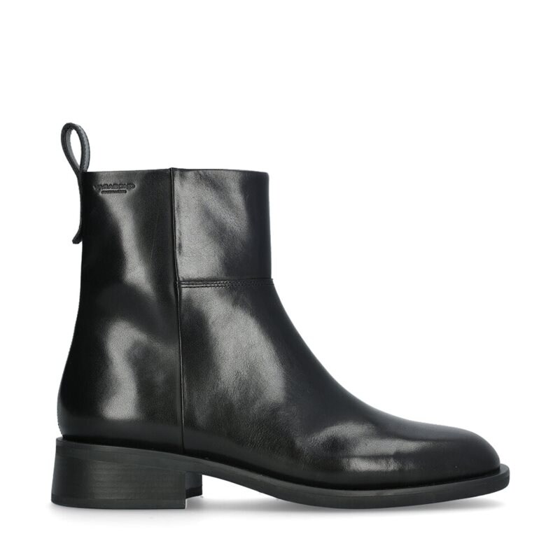 Sheila, tidlösa boots från Vagabond Shoemakers med ankelhögt skaft. Modellen är i svartskinn och rundad tå, dragflik baktill och kompletteras med en praktisk dragkedja på insidan. Insidan är tillverkad i textilfoder och kombineras med en innersula i skinn för ökad komfort. Diskret yttersula i gummiblandning. Klackhöjden mäter 4 cm.