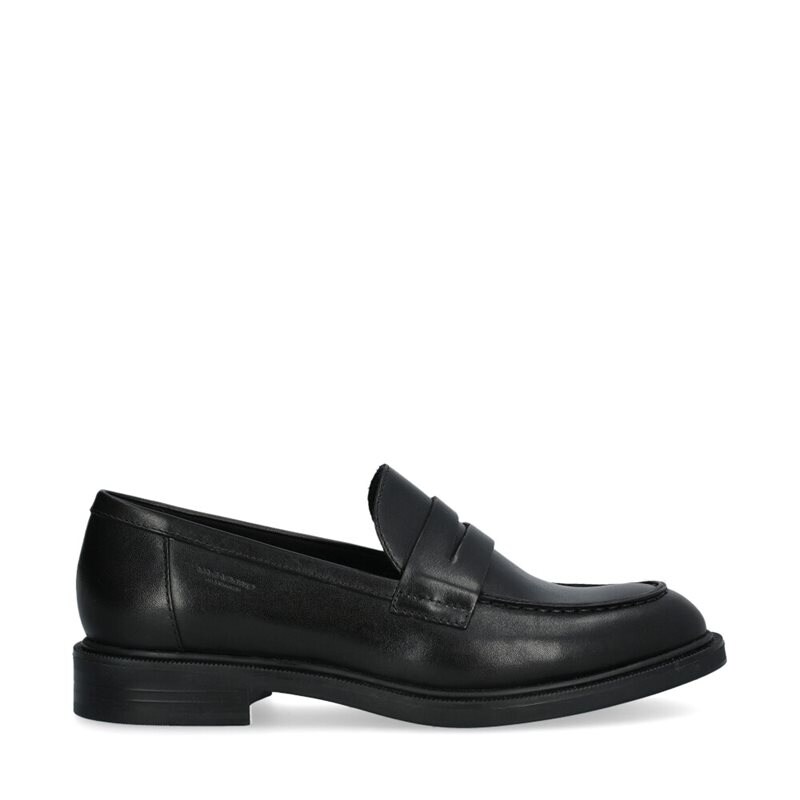 Amina. pennyloafers från Vagabond i svart skinn med rundad tå, innersula i skinn och foder i textil. Klassiska loafers med låg bekväm klack ca 3 cm hög.