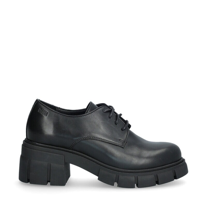 Avila, dressade lågskor från Dasia med en modern siluett. Modellen är i blankt, svart skinn med snörning framtill, fodrade med textil och mjuka komfortinnersulor i skinn för bra andningsförmåga. Högre, flexibel yttersula i svart gummiblandning och med grov klack, klackhöjd 6,5 cm.