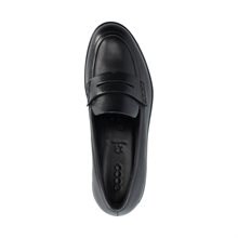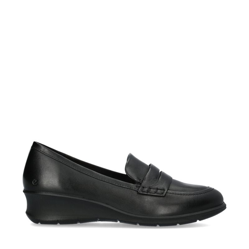 Felicia, lågskor från Ecco i svart skinn är klassiska pennyloafers med en bekväm lågkilklack och foder i mjukt microfiber. De snygga stickningarna på ovandelen ger skorna en extra touch av stil. Ecco Fluidform-konstruktionen ger dessutom en anatomisk passform för långvarig komfort.