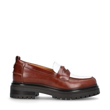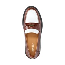 Ferentino från Novita, sofistikerade loafers som kombinerar stil och komfort. Ovandelen är tillverkad i brunt och vitt premiumskinn och har en dekorativ penny-rem med gulddetaljer. Skinnfodret och den mjuka innersulan med 3 mm foamskum ger extra bekvämlighet, medan den räfflade yttersulan i gummi säkerställer bra grepp och stabilitet.