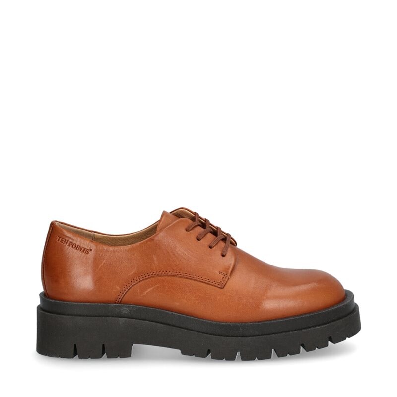 Margaret. lågskor från Ten Points, i metallfritt, cognacsfärgat läder, har en kraftig sula och en trendig look. Den lättviktiga sulan av TR-material ger inte bara det perfekta utseendet utan är också bekväm och otroligt lätt. Uttagbara innersulor i latex. En snygg snörsko som passar både för vardag och fest.
