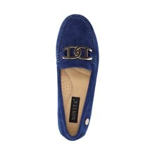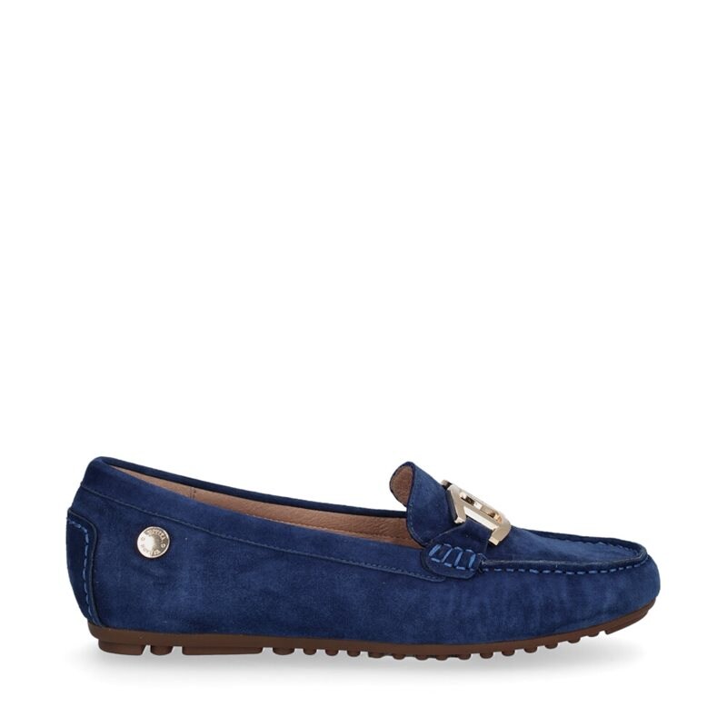 Parma, loafers från Novita i blå mocka. Snyggt guldfärgat spänne över foten. Innersulan har en yta som formar sig efter foten för ultimat komfort. Helt fodrad med skinn, yttersulan är en unik Novitasula gjord av gummi.