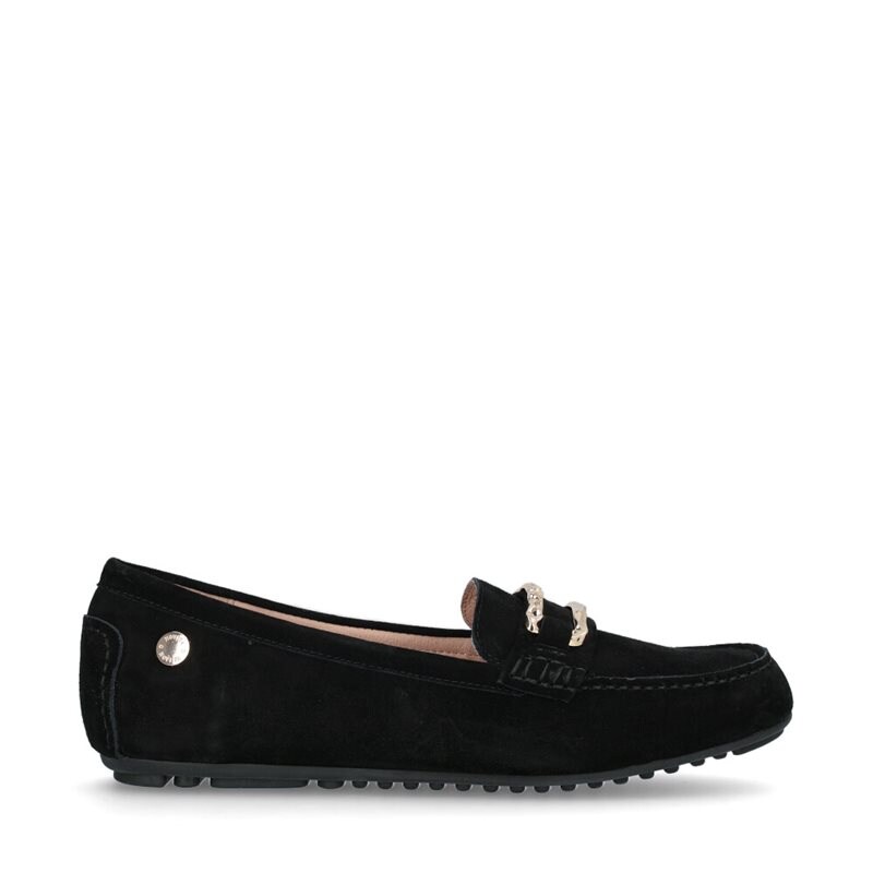 Parma, loafers från Novita i svart mocka. Snyggt metallspänne över foten. Innersulan har en yta som formar sej efter foten för ultimat komfort. Helt fodrad med skinn, yttersulan är en unik Novitasula gjord av gummi.