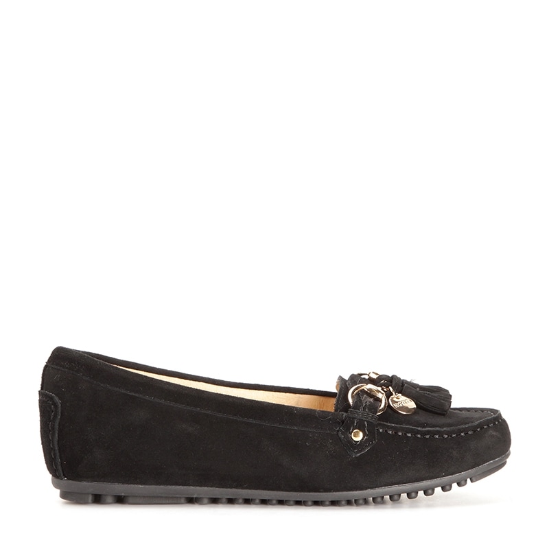 En klassisk loafer i fin getmocka och med ett guldfärgat logohänge som detalj. Denna loafer är extra vid (extra wide), har ett foder i skinn samt en mjuk, uppbyggd innersula för bästa komfort. Mönstrad och mjuk yttersula av gummi. En loafer som kan användas både som inne- och utesko. Novita är tidlösa, unika och omsorgsfullt tillverkade skor av finaste skinn från utvalda garverier.