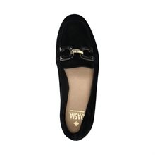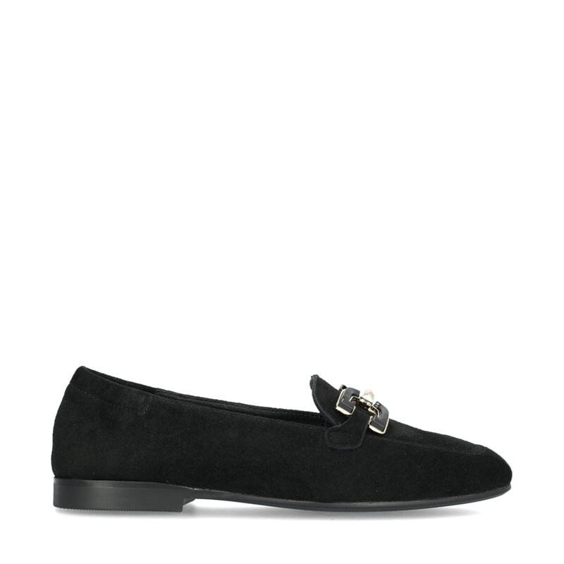 Shelly från Daisa - moderna loafers som gör dig redo alla tillfällen. Ovandelen är tillverkad i svart mocka med ett silverfärgat spänne över foten som dekorativ detalj. Modellen är designad med en elastisk häl för att säkerställa en skön passform. Innerfodret i följsamt skinn skapar en mjuk komfort för foten hela dagen. Yttersula i gummiblandning med en låg klack som mäter 1 cm.