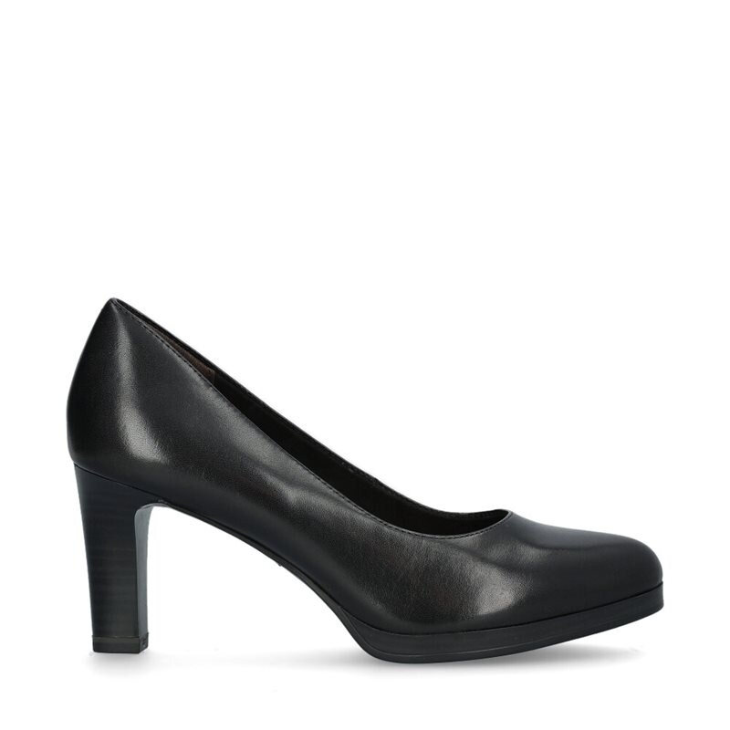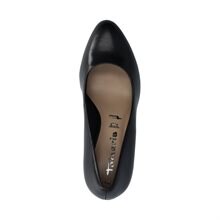 Pumps från Tamaris där det svarta skinnet kombineras med den stilfulla platån och klacken för att skapa en perfekt balans mellan komfort och tidlös stil. Med en omsorgsfull mix av textil och syntetfodring, är dessa pumps redo att bli en klassisk favorit i din skosamling. Klackhöjden är 7 cm och skorna har en platå framtill på ca 1 cm.