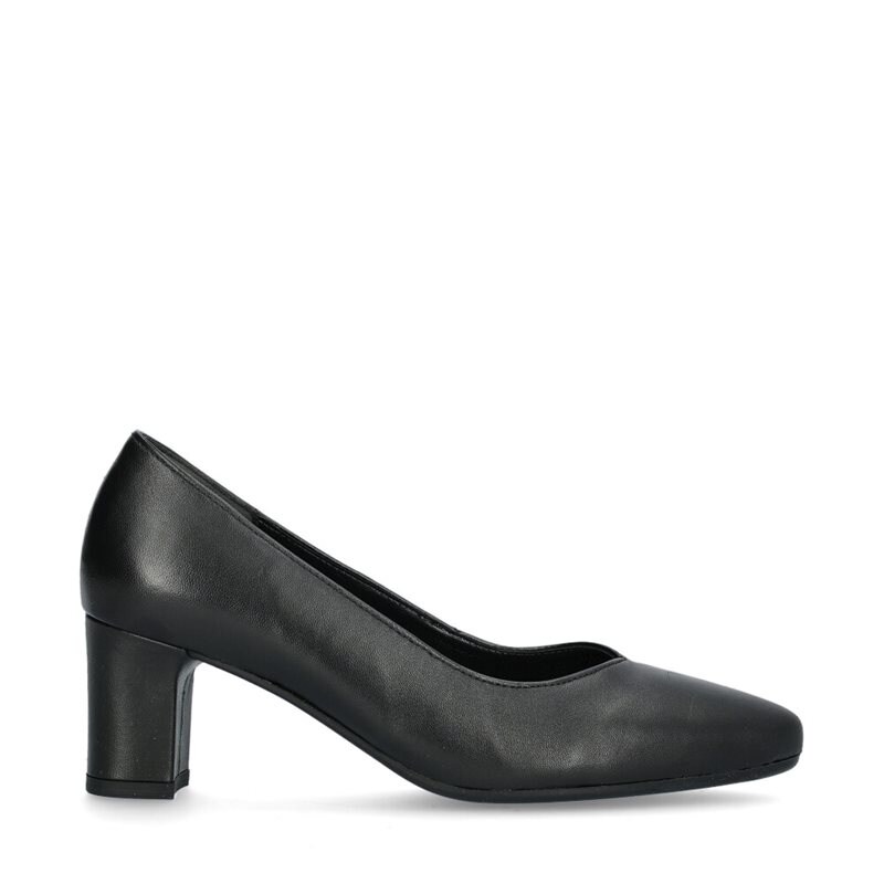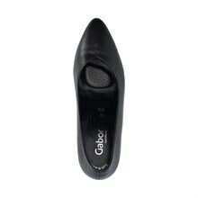 Pumps från Gabor i svart skinn med något vidare läst, bekvämt för dig med lite bredare fötter. Blockklack ca 6 cm hög och foder i skinn.