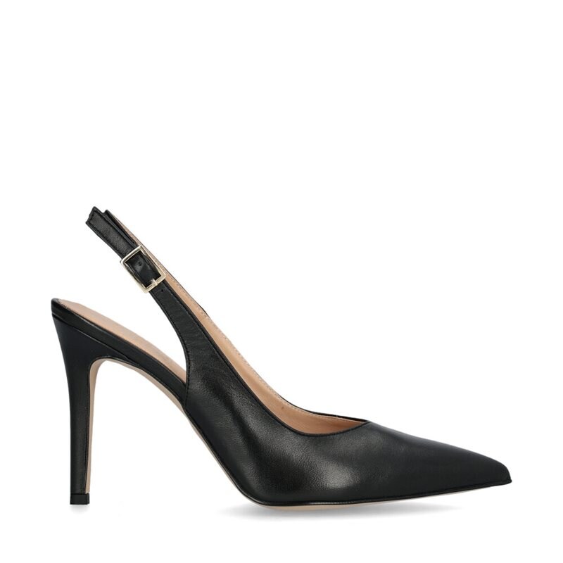 Elini från Novita Gold Collection - slingbacks pumps med spetsig tå och ett rektangulärt guldfärgat spänne på sidan. Fodrad i mjukt getskinn som erbjuder både passform och komfort. Den klädda klacken mäter 9,5 cm. Tillverkad i Italien.