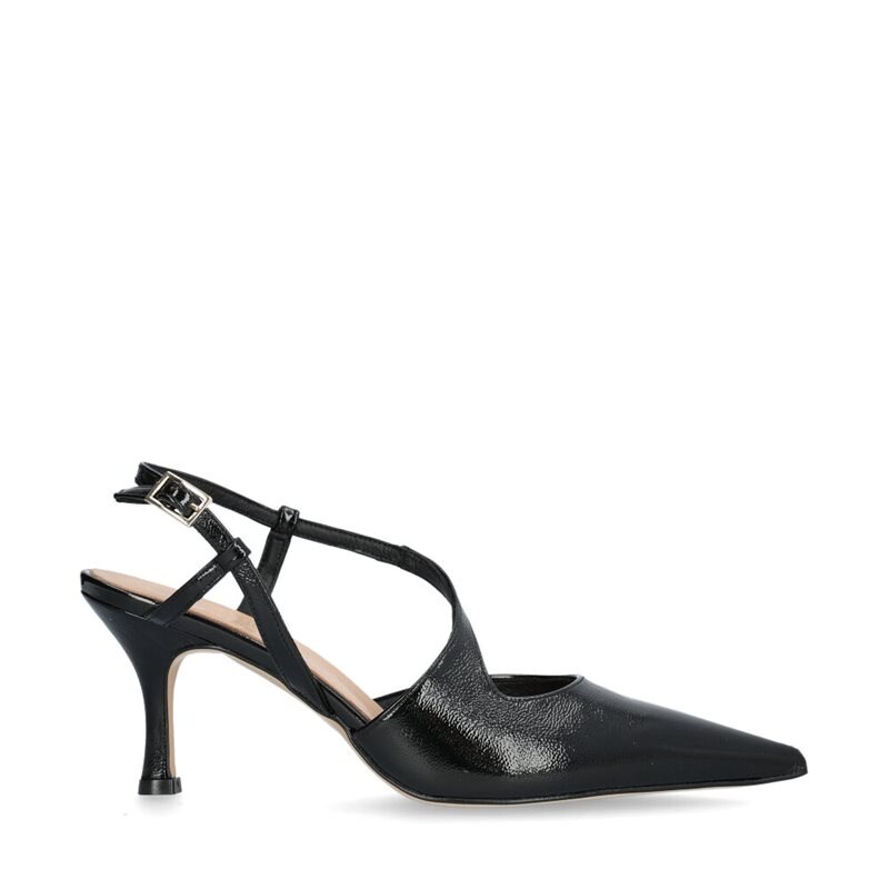 Novara från Novita Gold Collection - festliga pumps i slingback design och dekorativt spänne över foten. Ovandel i mjuk napplacks skinn med innefoder i tunt nappaskinn. Skinnklädd klack som mäter 7,5 cm.