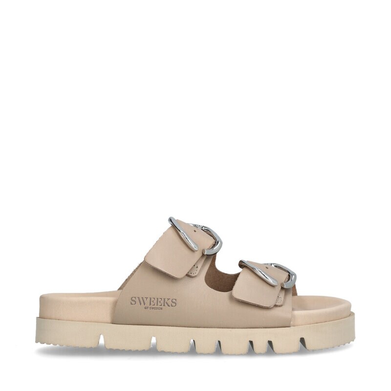 Klara, sandaler från Sweeks i ett snyggt gråbeige skinn, en perfekt kombination av stil och komfort. Med en mjuk och skön fotbädd klädd i skinn och reglerbara remmar med dekorativa silverfärgade spännen ger dessa sandaler en lyxig känsla. Den lätta EVA-sulan med grovt mönster ger också utmärkt grepp och stabilitet. Handgjorda i Spanien.