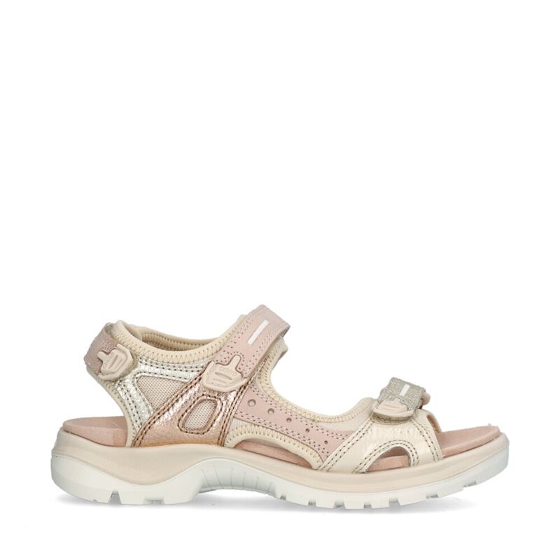 Offroad, sandaler från Ecco. Ovandel i ljusrosa nubuck, insidan fodrad med ljus neopren och innersula i microfiber. Skorna har tre justerbara remmar för perfekt passform och bra stöd. Mellansula i flexibelt material, format efter foten och yttersula med Receptor®-teknologi som ger komfort och bra grepp på de flesta underlag.