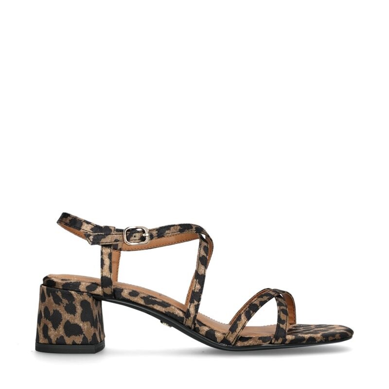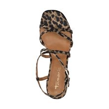 Sandaletter från Tamaris, med en klackhöjd på 5 cm. Den bredare klacken och leo-mönstret gör denna sandaletten till ett trendsäkert val.. Med en smal rem runt ankeln som knäpps med spänne är skon enkel att ta på. Passar bra både till en dressad vardagsoutfit och till festklänningen.