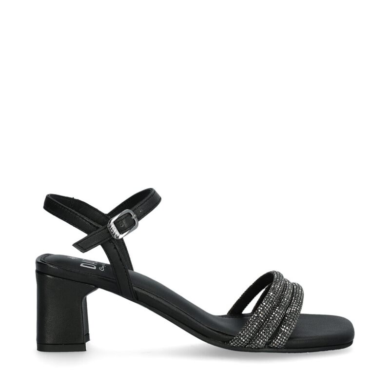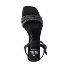 Ginger, sandalett från Dasia. Dekorativa glitterremmar fram. Reglerbar hälrem som knäpps med ett silverfärgat spänne. Klädd stabil klack som är ca 6 cm hög. Innersula i skinn och yttersula i gummi för bra grepp.
