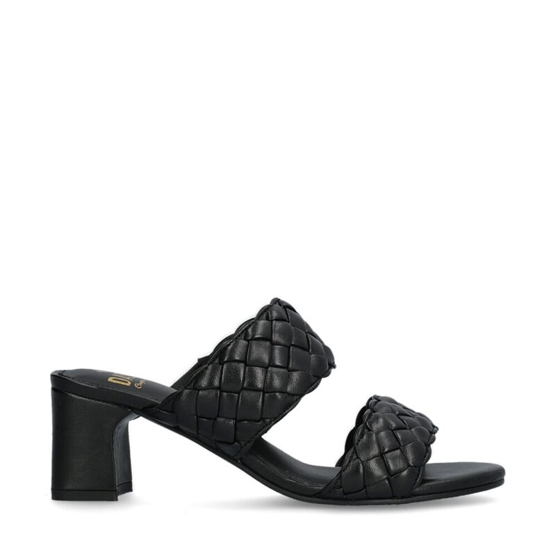 Ginger, sandaletter från Dasia i mjukt, svart skinn Två flätade remmar över foten, där den övre remmen har ett parti med elastik för att få fin passform över foten. Rund tåform och klackhöjd på ca 5 cm. Innersula med foam, klädd med skinn för bästa komfort, flexibel yttersula i gummi för bra grepp.