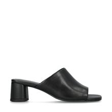 Piper från Vagabond - klassiska högklackade mules. Modellen är gjord i svart skinn med en slät ovandel och blockklacken mäter 4,5cm. Perfekta klackar både till vardags och till fest.
