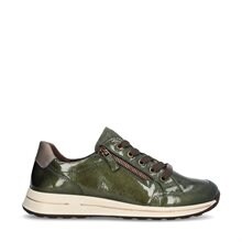 Osaka, bekväma och sportiga sneakers från Ara i mjukt lackat, grönt skinn. Fodrade med mjuk textil och frotté, som säkerställer en behaglig fotmiljö genom att absorbera fukt och torka snabbt. De uttagbara innersulorna med frotté på ovansidan, kan enkelt bytas ut. Den vadderade kanten förhindrar tryckpunkter, och med både snörning och dragkedja anpassas skon efter dina behov. Den halkfria kilklacken ger bra grepp - perfekt för fritiden.