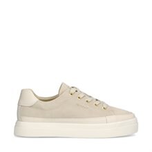 Avona, sneakers från GANT i beige mocka och skinn med guldfärgade öljetter. Fodetr i textil och skinn, yttersula i platåmodell i ljus gummiblandning, uttagbara innersulor.