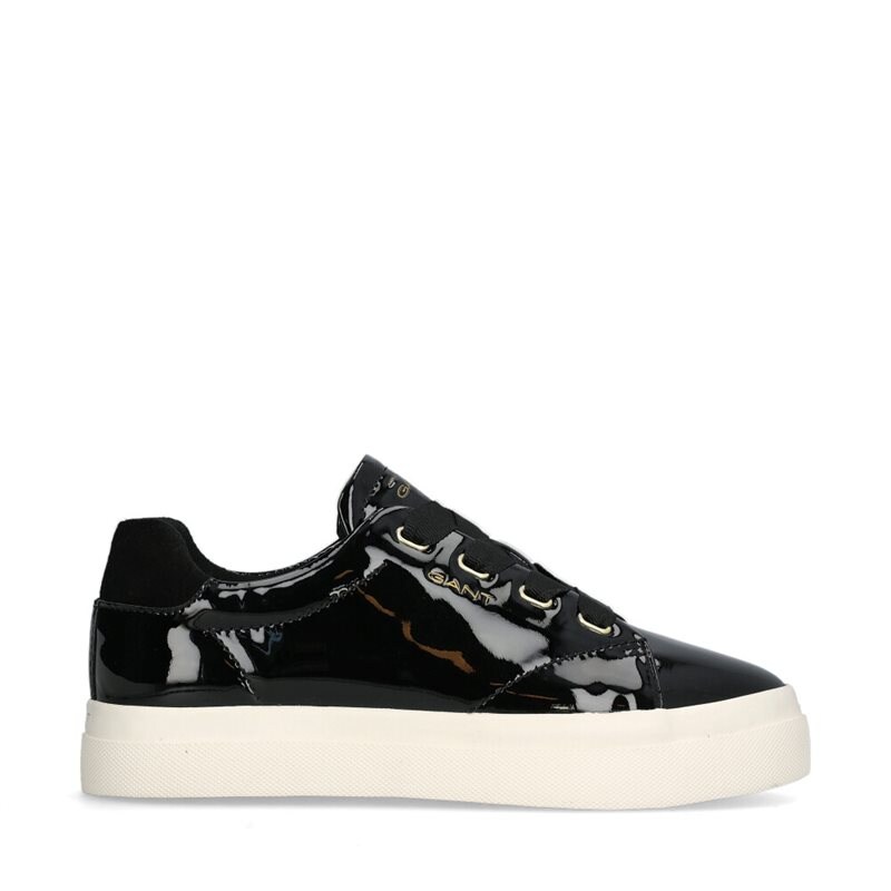 Avona sneakers från Gant har en tidlös design med blankt svart skinn och kombinerat med mocka på bakkappan. De guldfärgade öljetterna och platta, svarta snören ger en modern look. Platåsulan i vitt gummi gör dem både bekväma och trendiga.