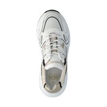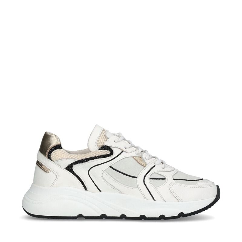 Dana, sportiga sneakers från Dasia. Ovandel i skinn och mocka i ljusa nyanser med snygga detaljer i svart och guld. Bekvämt foder i textil och uttagbara innersulor i skinn. Mellansula i vitt med slitsula i svart gummiblandning.