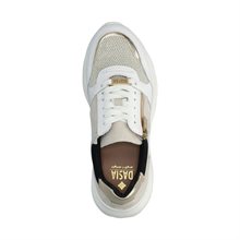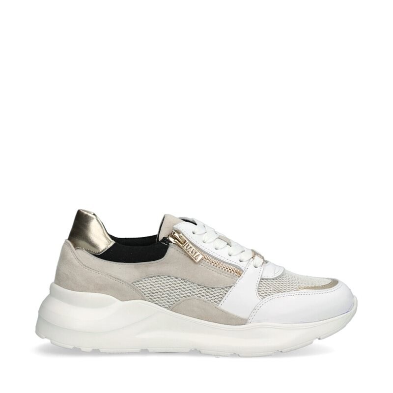 June, sportiga sneakers från Dasia med ovandel i skinn, mocka och texil. Funktionell, guldfärgad dragkedja och metall logoplatta. Foder i textil med en uttagbar innersula i skinn. Yttersula i ett lättviktsmaterial med inblandning av gummi vilket gör sulan både lätt och slitstark.