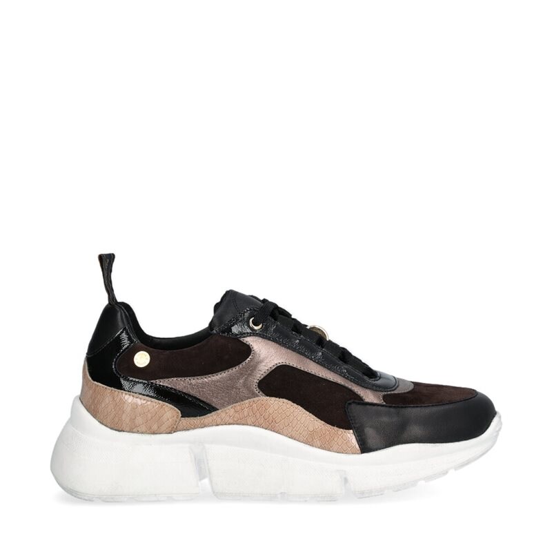 Marcena, sneakers från Novita i en snygg och sportig modell. Ovandel i en svart/brun/beige materialmix av mocka, och skinn. Yttersula i vitt gummi. Modellen har ett chunky utseende som ändå upplevs som nätt på foten. Novita är tidlösa, unika och omsorgsfullt tillverkade skor av finaste skinn från utvalda garverier.