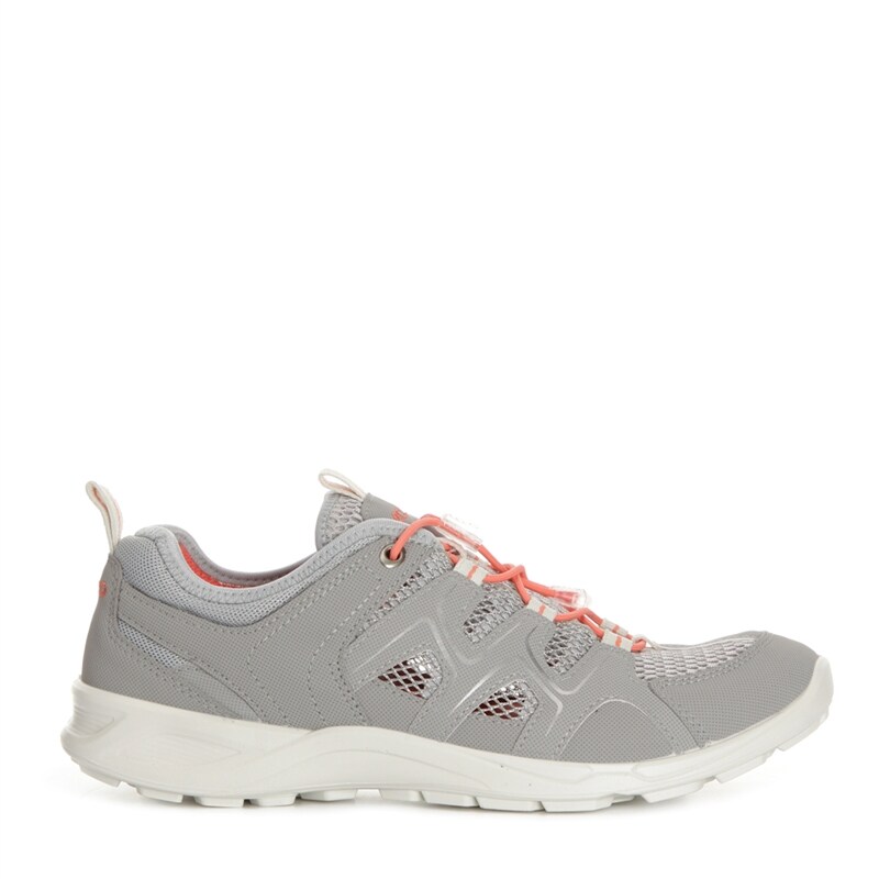 Terracruise, sneakers från Ecco med ovandel i grå mesh som andas, orange detaljer samt reflexdetaljer. Anatomisk läst, foder i textil, snabbsnörning samt draghälla på bakkappan. Yttersula i vitt gummi.