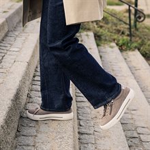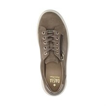 Viola, sneakers från Dasia i beige mocka. Snörning för flexibel passform och en funktionell dragkedja på utsidan för att lätt kunna få på och av skorna. Sneakers som är fodrade med textil och har skinnklädda innersulor med luftkuddar som skapar bekväm stötdämpning och bra luftcirkulation. Flexibel lättviktssula i off-white med färgad rand på sidan som matchar ovandelen, mönstret undertill ger bra grepp. Något vidare läst, bekvämt för dig med bredare fötter. Ingår i Dasias underlinje Think Soft - där modern design möter naturlig och bekväm passform.