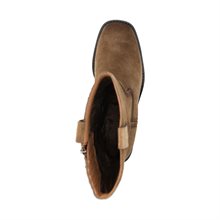 Cognacsfärgade stövlar från Tamaris med biker-inspirerad look. Ovandelen är tillverkad i en mix av skinn, syntet/textil och är utrustad med en praktisk dragkedja på insidan så att du lättare kan ta av och på stövlarna. Innerfoder i textil för bättre komfort och yttersula i syntetmaterial. Blockklacken mäter 5 cm.