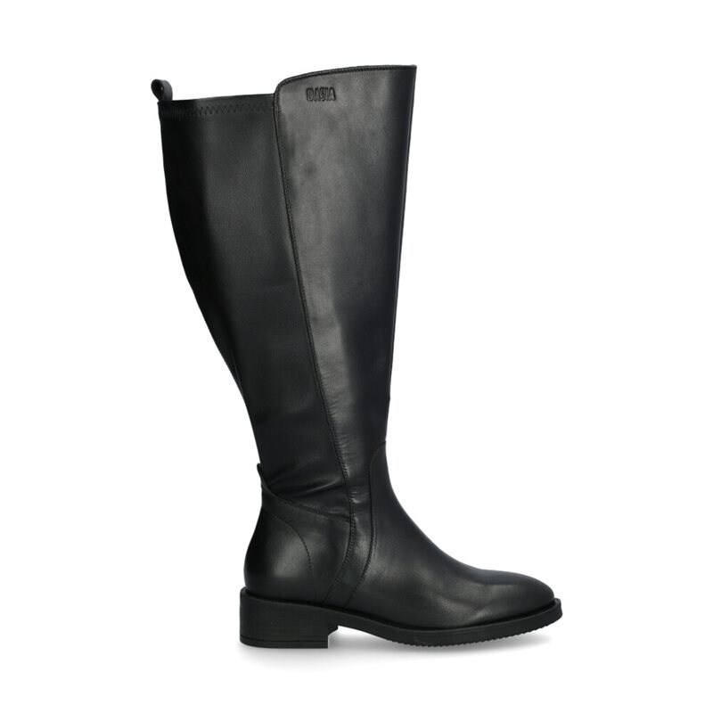 Bariba, stövlar från Dasia i svart skinn och stretch. Baksidan av skaftet är i ett stretchmaterial som gör att stöveln får fin passform runt benet, dragkedja på insida av skaftet för att enkelt kunna ta på och av stövlarna. Fodrade med textil och har bekväma innersulor klädda med skinn. Flexibla yttersulor av gummiblandning. Skaftvidd W6/W7. Skafthöjd ca 40 cm.