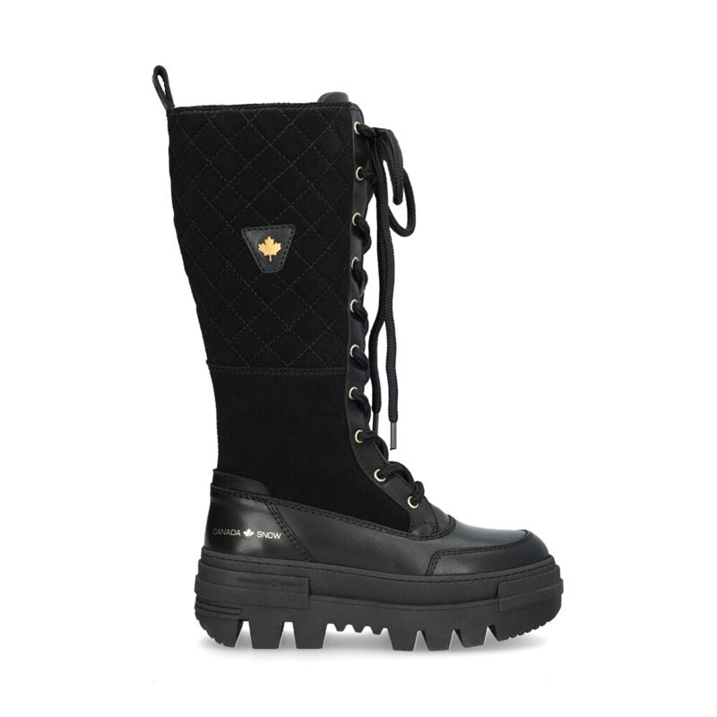 Mount Riz är Canada Snows nya varmfodrade känga, designad i högt skaft och snörning. Svart ovandel som är tillverkad i en kombination av både skinn och mocka. Innersula och foder i en varm ullblandning för bekvämlighet, både för benen och foten. Mellansulan är tillverkad i 3 värmeisolerade skikt såsom kork, aluminium och thinsulate. Robust tandad yttersula för optimalt grepp på alla underlag.