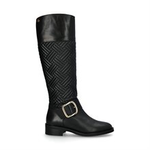 Nardo, premiumstövlar ur Novitas "Gold Colletion" Rundad tå och slät, polerad sulkant. Skorna har en ovandel i svart italienskt kalvskinn samt kalvskinnsfoder så att du kan njuta av dem i flera år. Bred rem över foten med stort kantigt guldfärgat spänne. Stöveln har ett vackert, quiltat skaft i syntetskinn som gör sig otroligt fint. Denna kollektion är en påminnelse om att när det handlar om elegans, är kvalitet och hantverk alltid i fokus. Skaftvidd W3 och skafthöjd ca 40 cm.